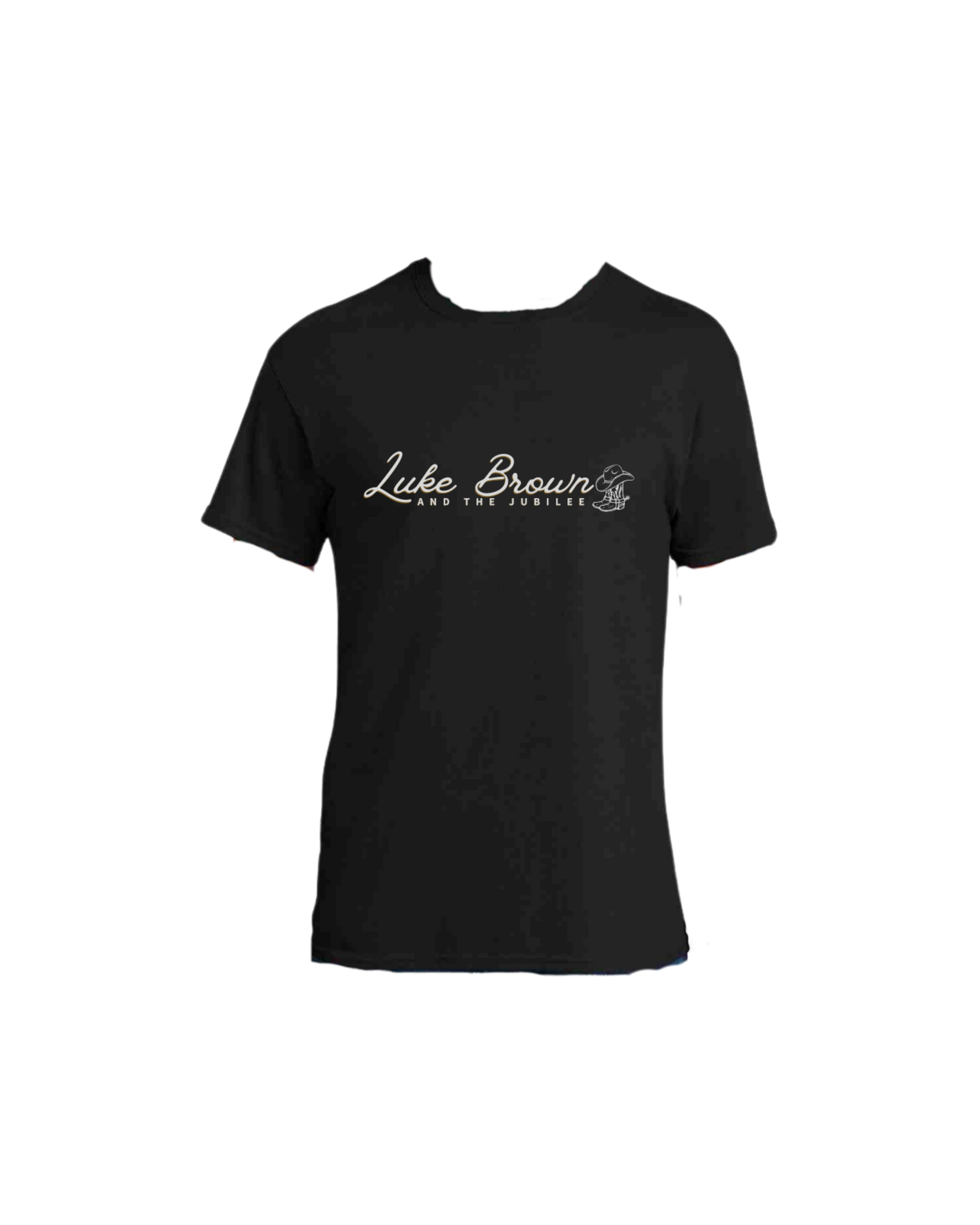 Black short-sleeve shirt with script band logo on front